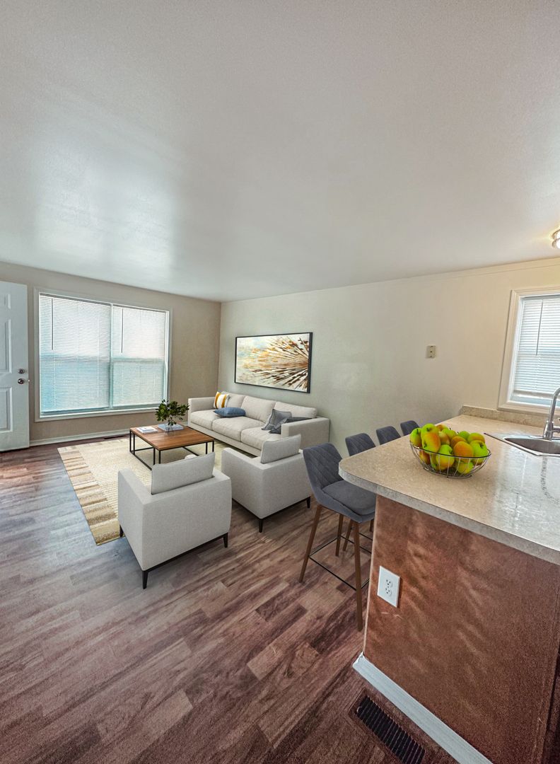 Experience the best of single-story cottage living in the 2x1 Floor Plan at Woods Crossing. This beautifully designed 864 sq. ft. residence offers two full bedrooms, one modern bath, and an open-concept layout perfect for easy living. Enjoy a private entry, welcoming porch, and in-unit laundry for everyday convenience. The fully equipped kitchen and modern design touches make this home ideal for both relaxation and entertaining.